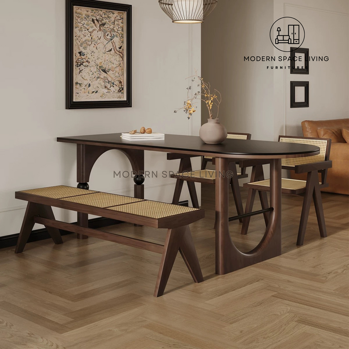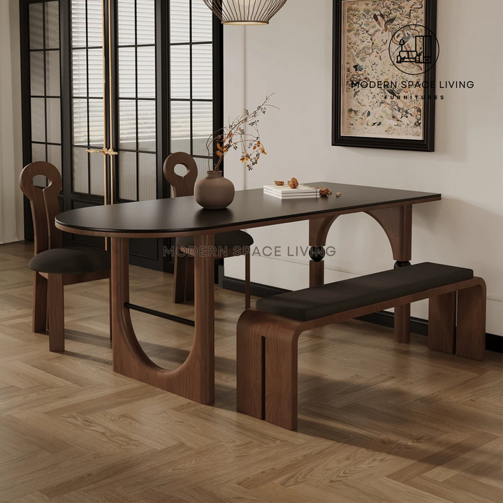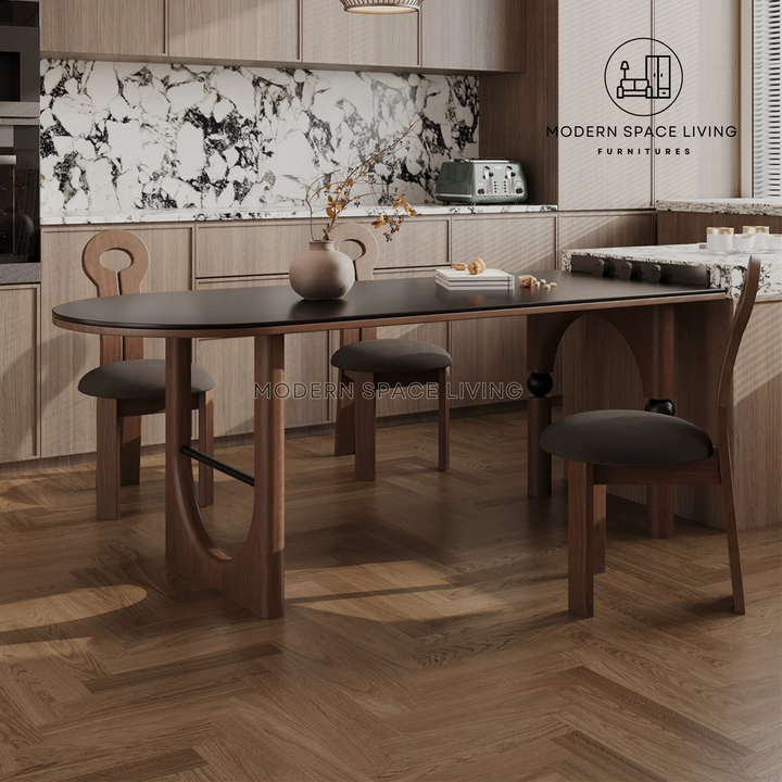 Elevate your dining room with the LEILANI Modern Sintered Stone Dining Table, a sophisticated and exclusive addition to your furniture selection. Crafted with enduring pine wood legs, this table exudes durability and strength, making it an ideal choice for any dining space.